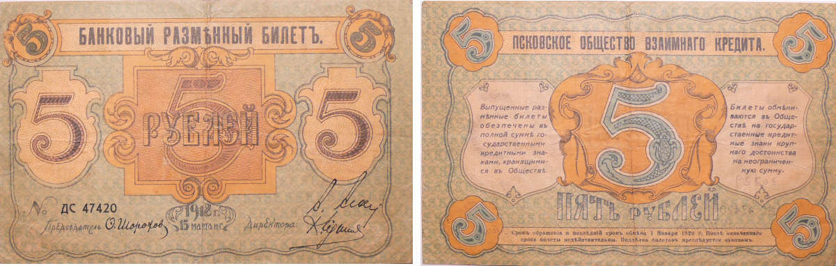 / Russie – Northwest Russia, Pskov regional government – 5 roubles 15.03.1918