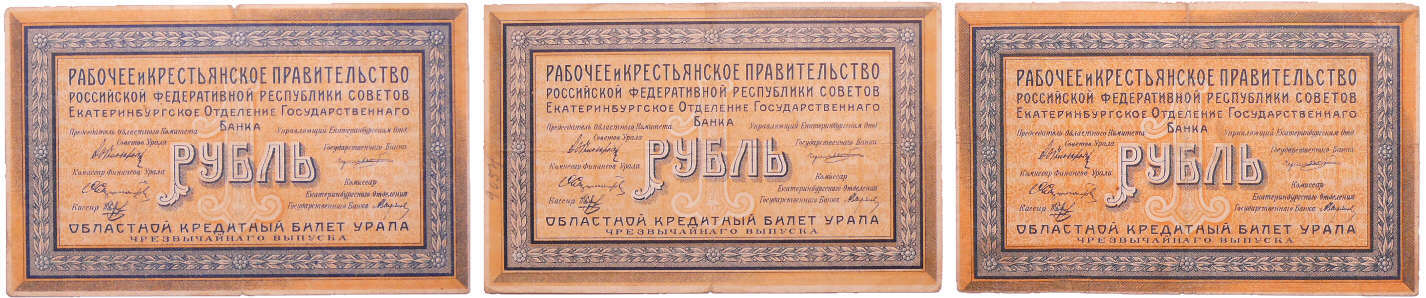 Russie – Siberia & Urals, Ekaterinburg – 1 rouble (x3) (1918)