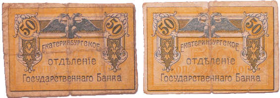 Russie – Siberia & Urals, Ekaterinburg – 50 kopecks (x2) (1918)