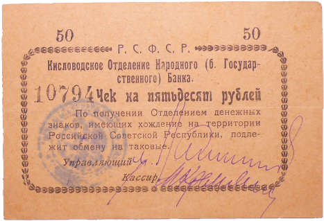 / Russie – Siberia & Urals, Kislovodsk Bank – 50 roubles (1920)