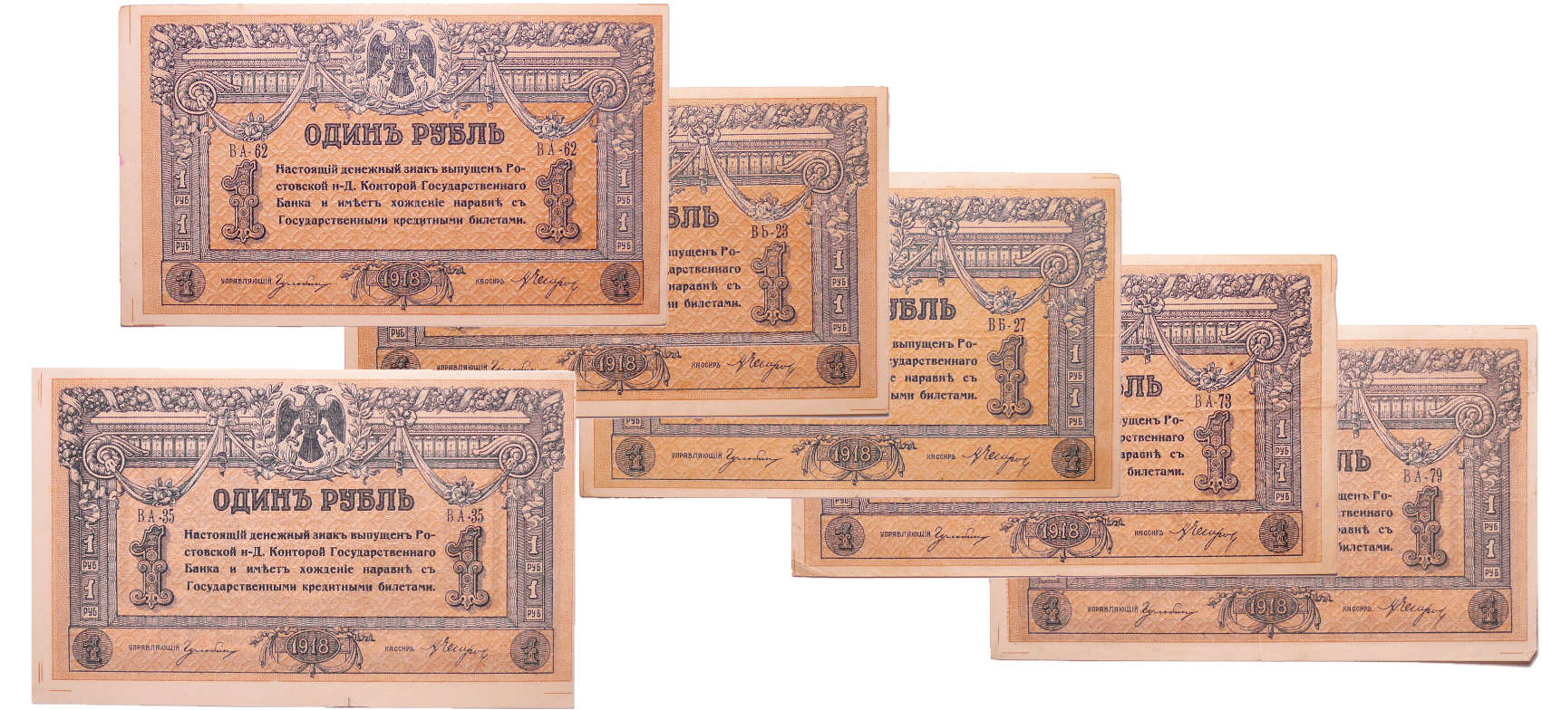 Russie – South Russia, Government Bank – Lot de 6 billets, 1 roubles (1918)
