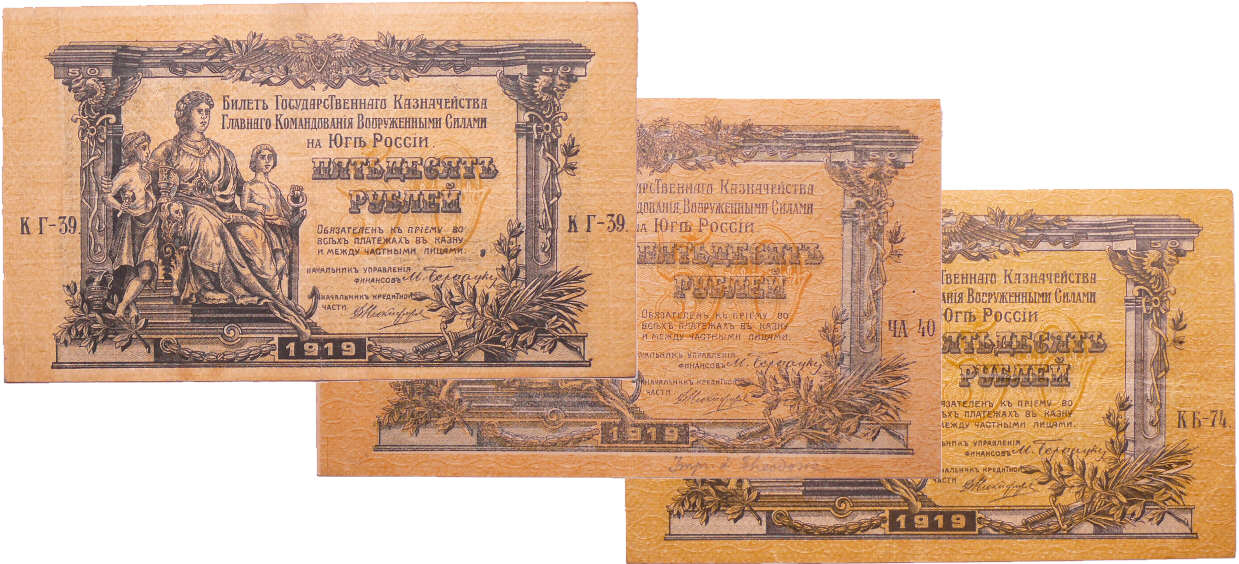 / Russie – South Russia, Government treasury – Lot de 3 billets, 50 roubles (1919)