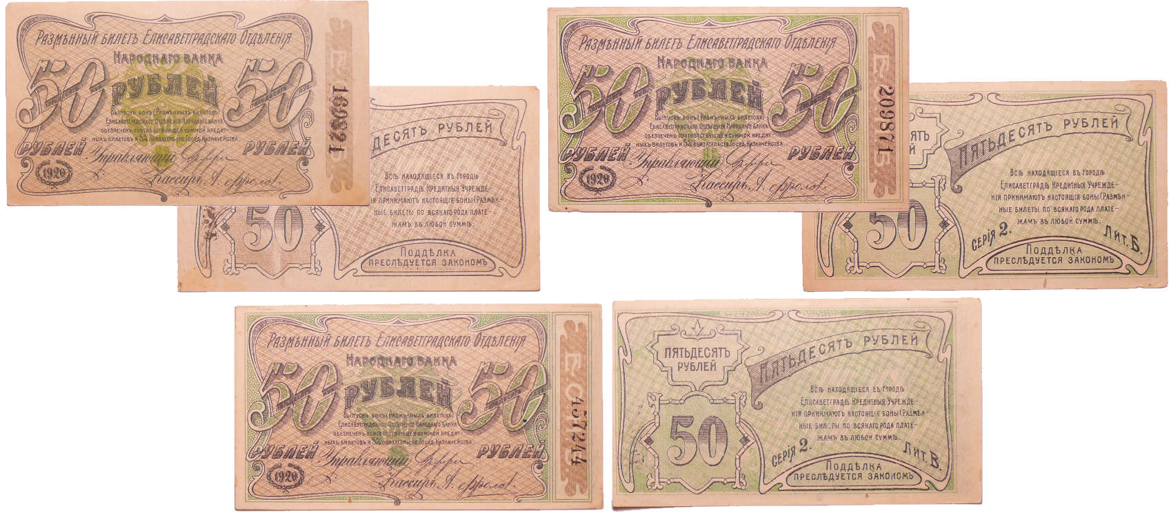 Russie – Ukraine & Crimea, Elizabetgrad – Lot de 3 billets, 50 roubles (1920)
