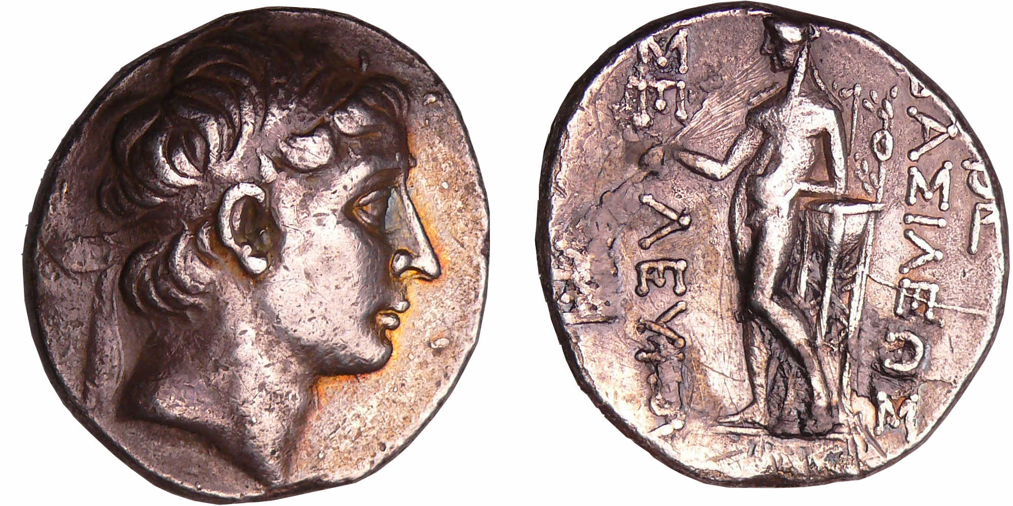 Revers : R/ ΒΑΣΙΛΕΩΕ / ΣΕΛΕΥΚΟΥ. Apollon debout appuyé à un trépied et tenant une flèche de la main droite.
