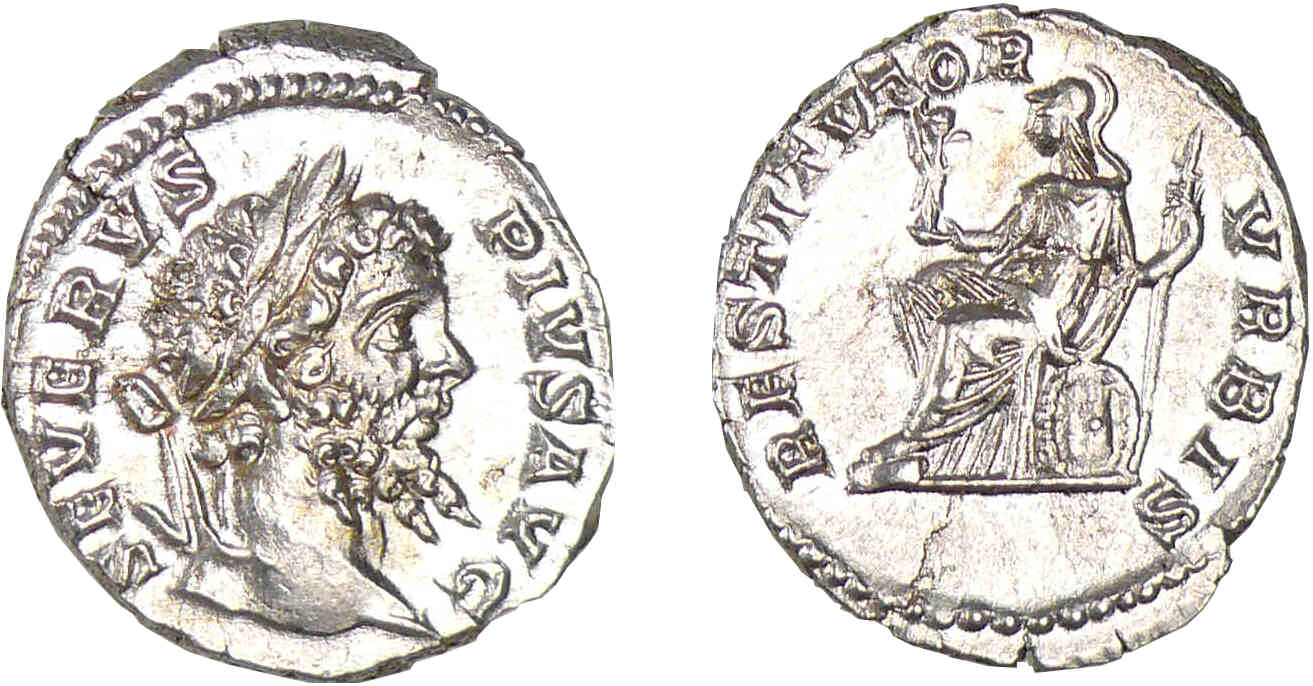 Septime Sévère – Denier (207, Rome) – Rome assise