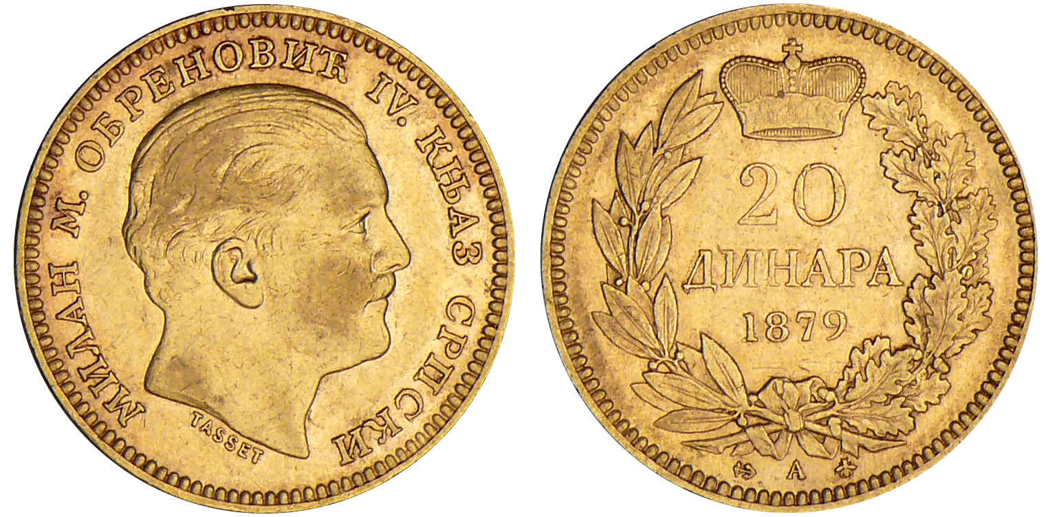/ Serbie – Milan Obrenovich IV – 20 dinars 1879