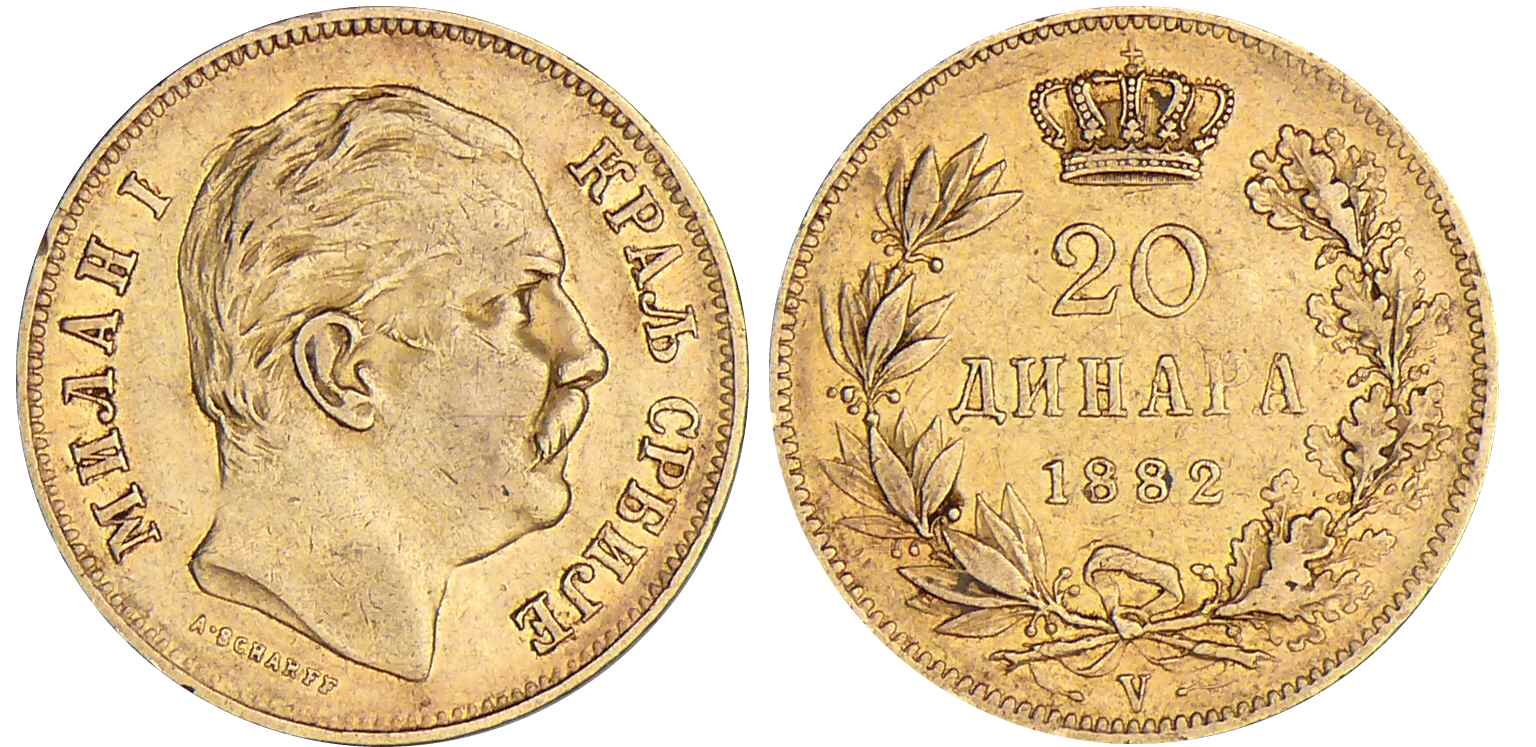 / Serbie – Milan Obrenovich IV – 20 dinars 1882 V