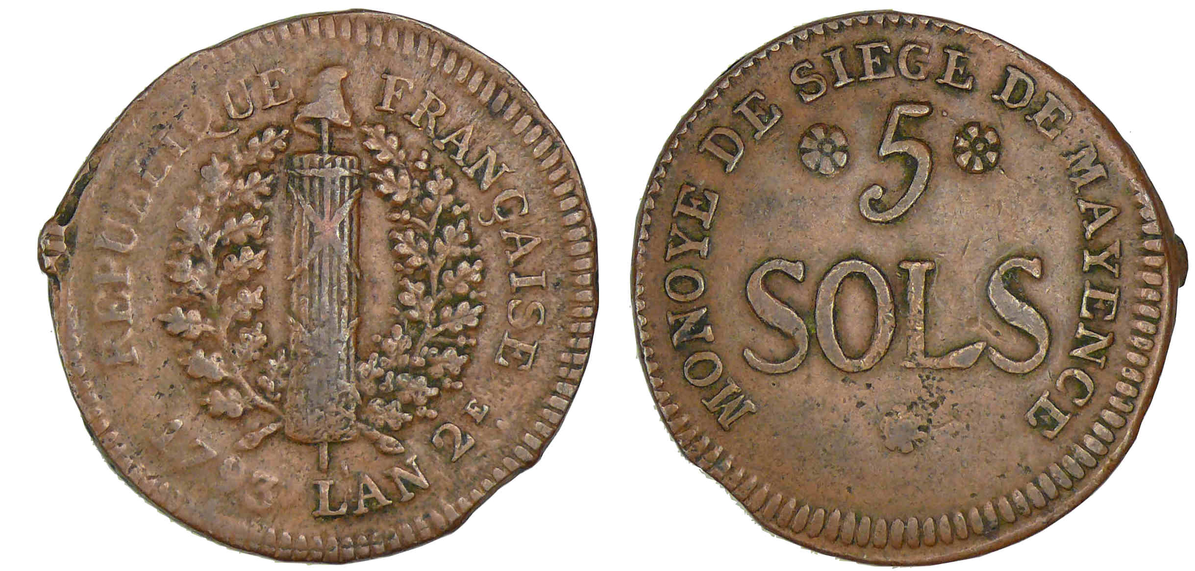 Siège de Mayence – 5 sols 1793 – An 2ème