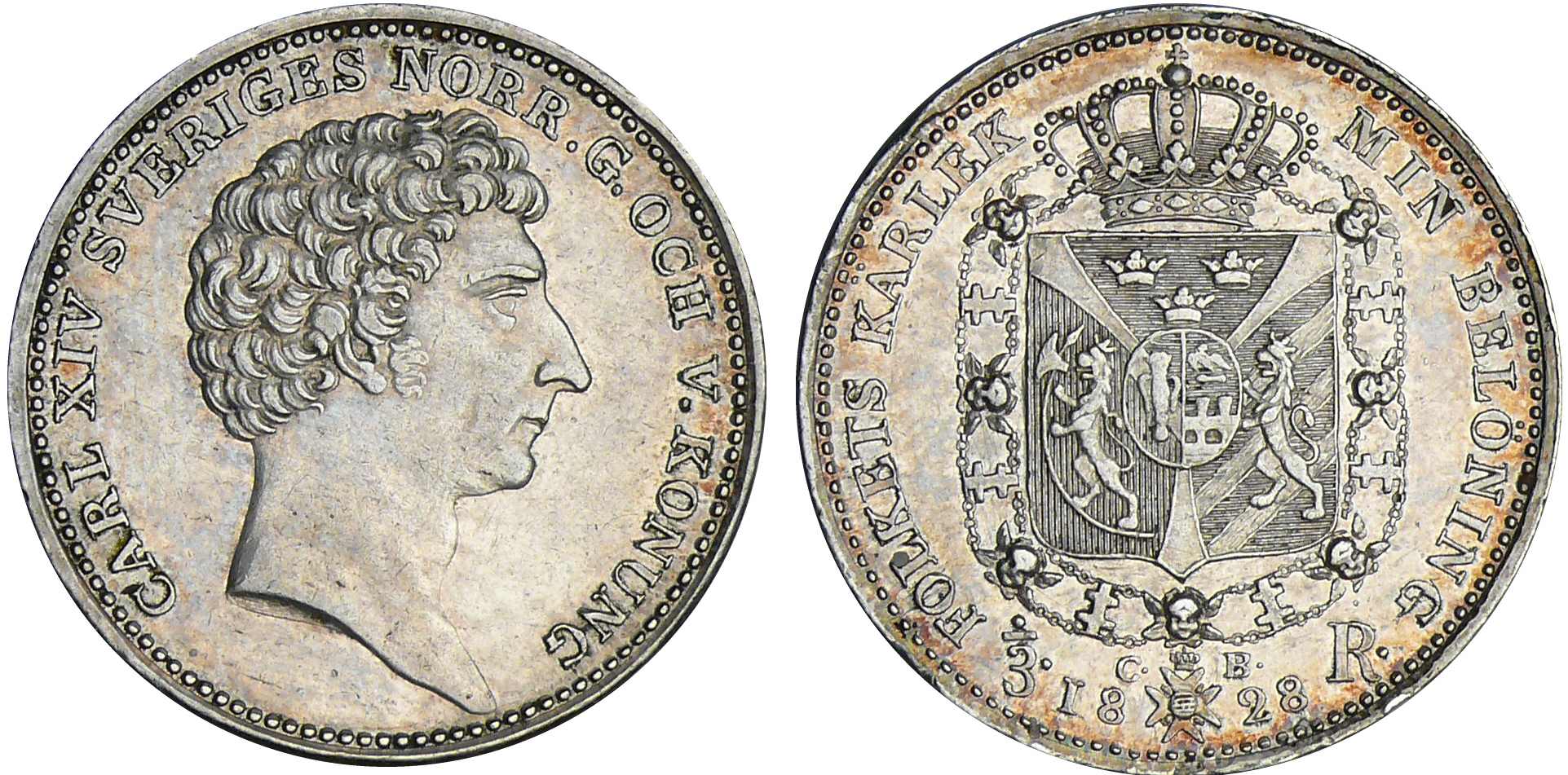 / Suède – Carl XIV – 1/3 riksdaler 1828