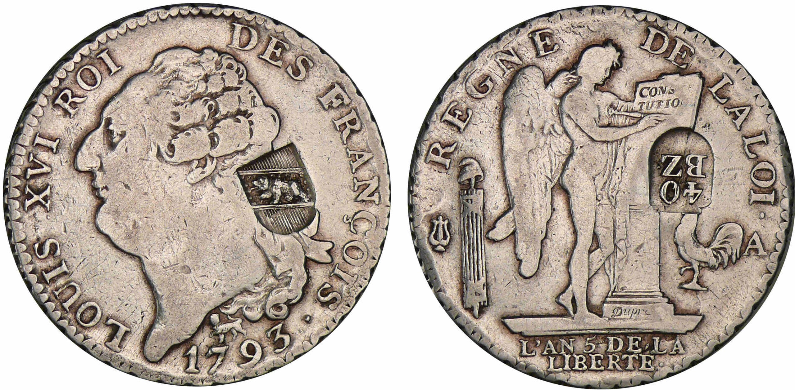 / Suisse – Bern – 40 batzen (1816) contremarqué sur un écu constitutionnel 1793 A (Paris)