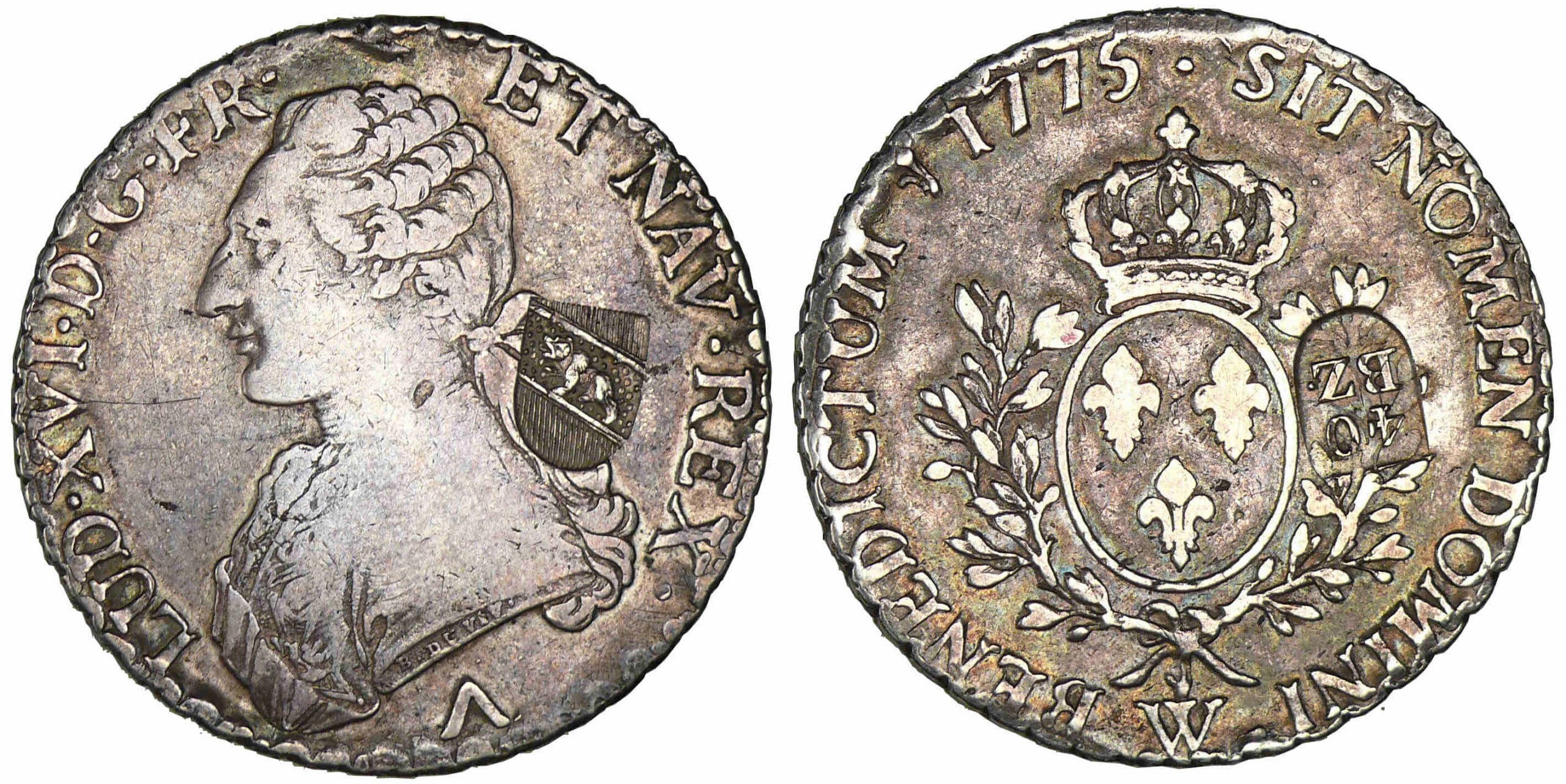 Revers : R/ BENEDICTUM (millésime) SIT NOMEN DOMINI (atelier). Ecu rond de France couronné entre deux palmes. Contremarque.