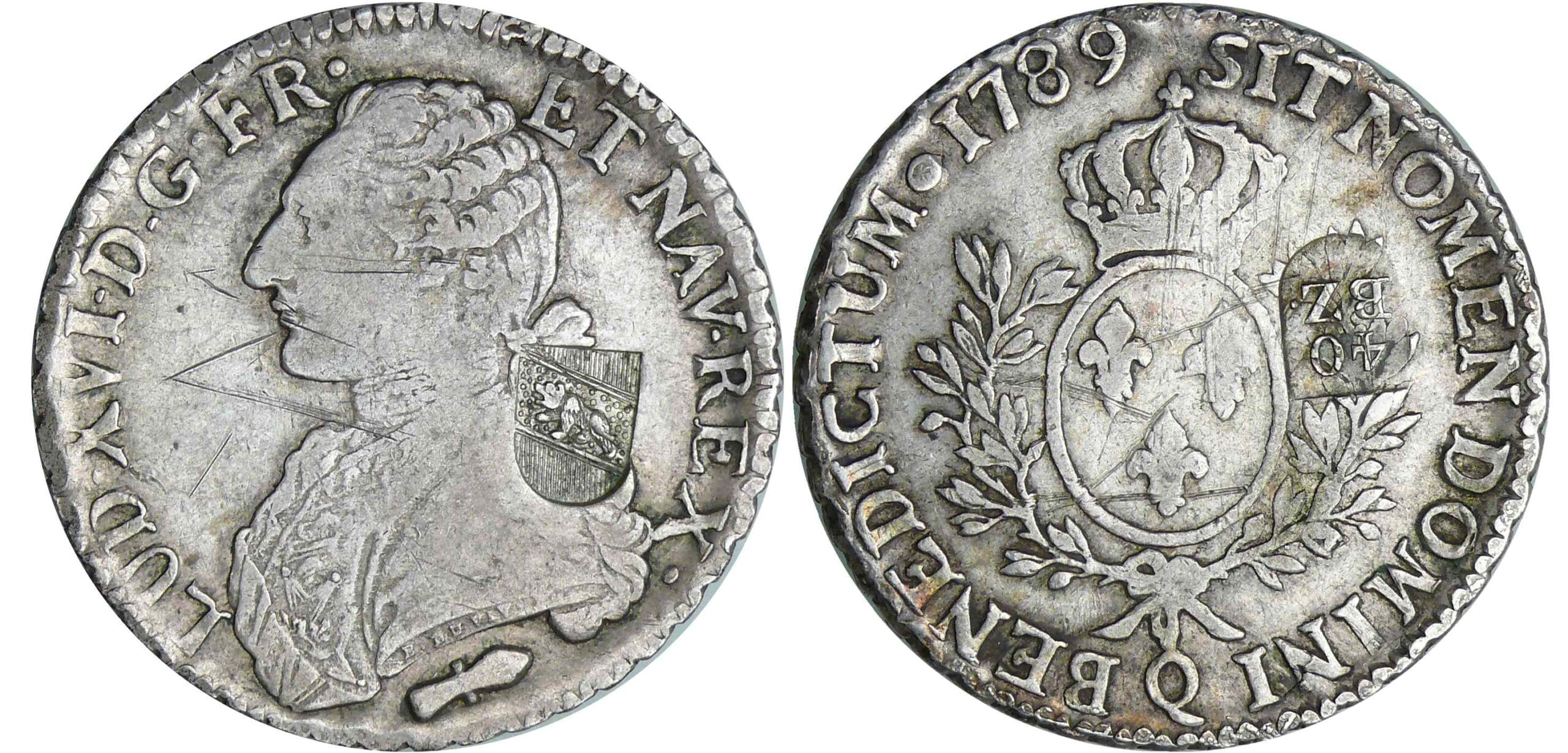 / Suisse – Canton de Berne – 40 batzen (1816) contremarqué sur un écu de Louis XVI 1789 Q (Perpignan)