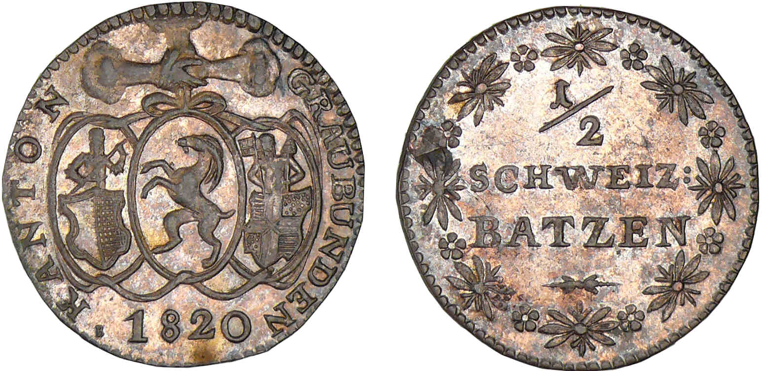 / Suisse – Granbunden – 1/2 batzen 1820