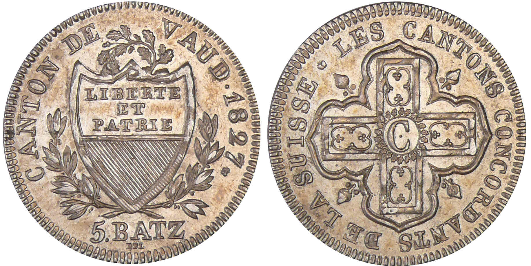 / Suisse – Vaud – 5 batzen 1827