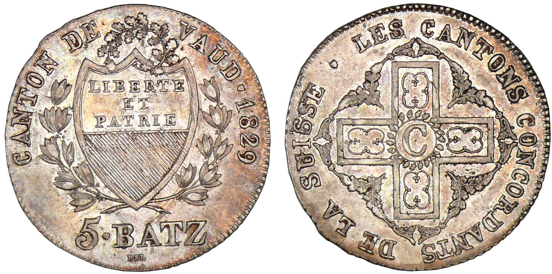 Suisse – Vaud – 5 batzen 1829