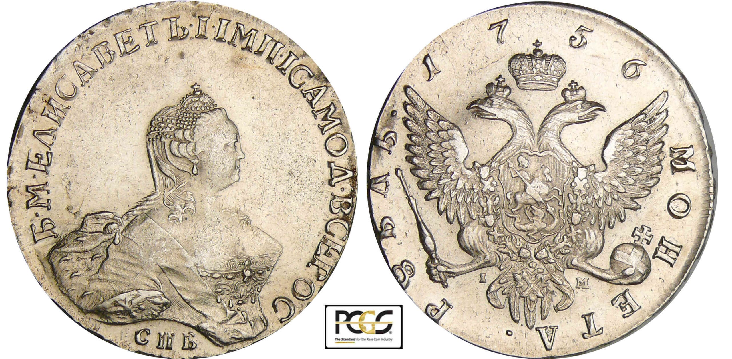 Russie – Elizabeth (1741-1762) – Rouble 1756 СПБ IM (Saint-Pétersbourg)