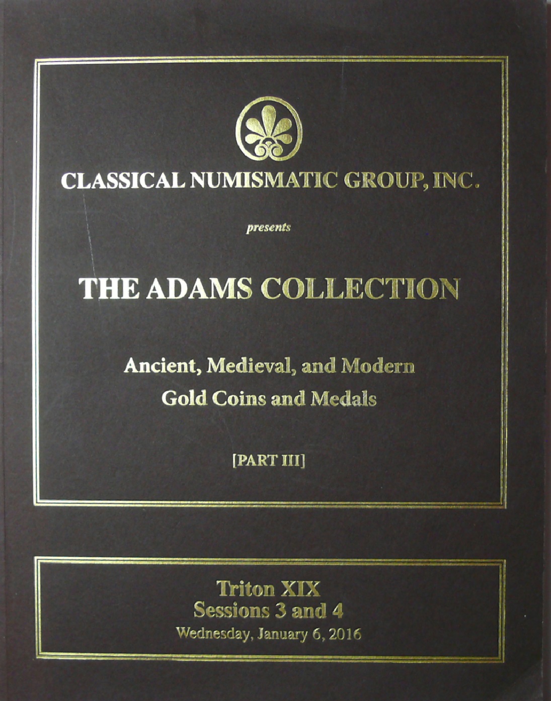 The Adams Collection, part III, Wednesday January 6 2016, Classical Numismatic Group