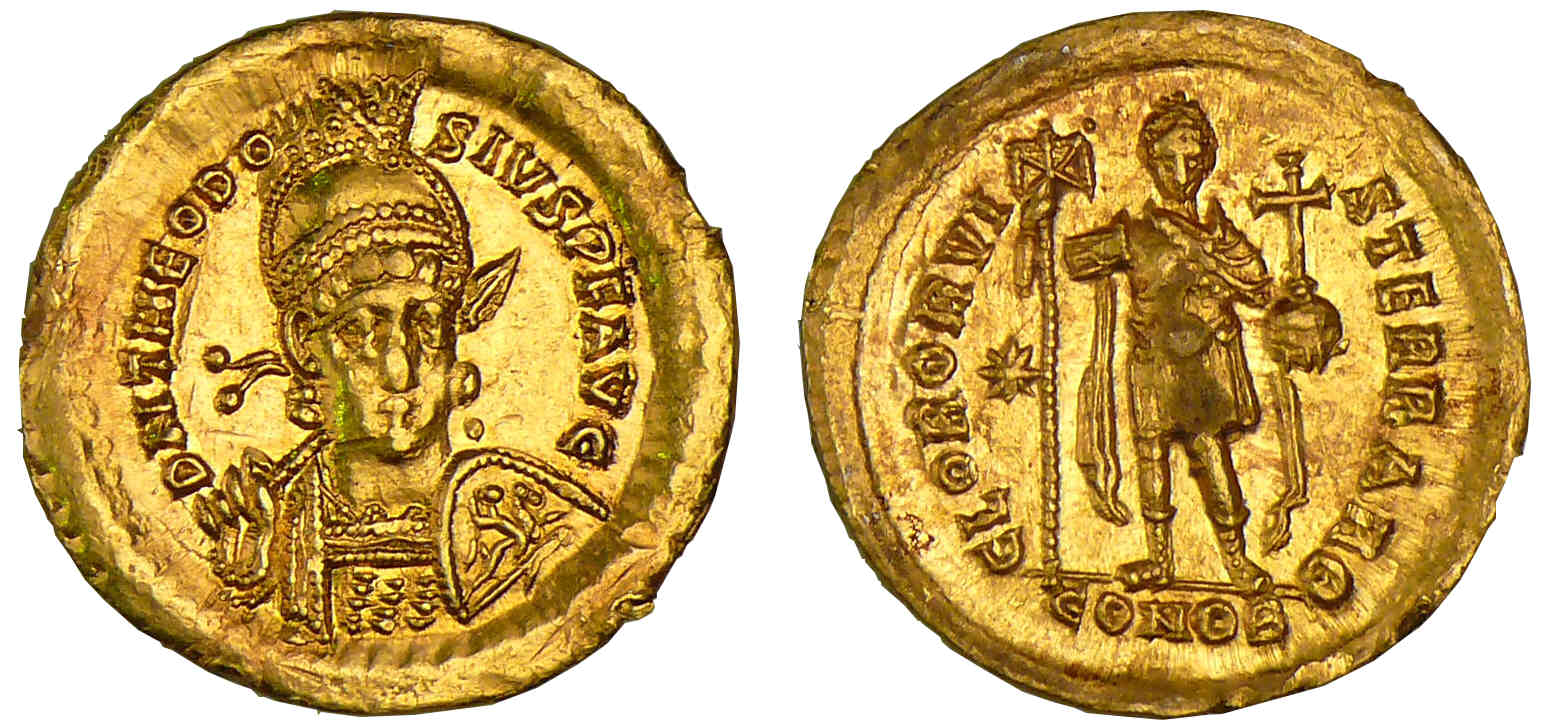 A/ D N THEODO-SVIS P F AVG. Buste casqué de face, tenant une haste.