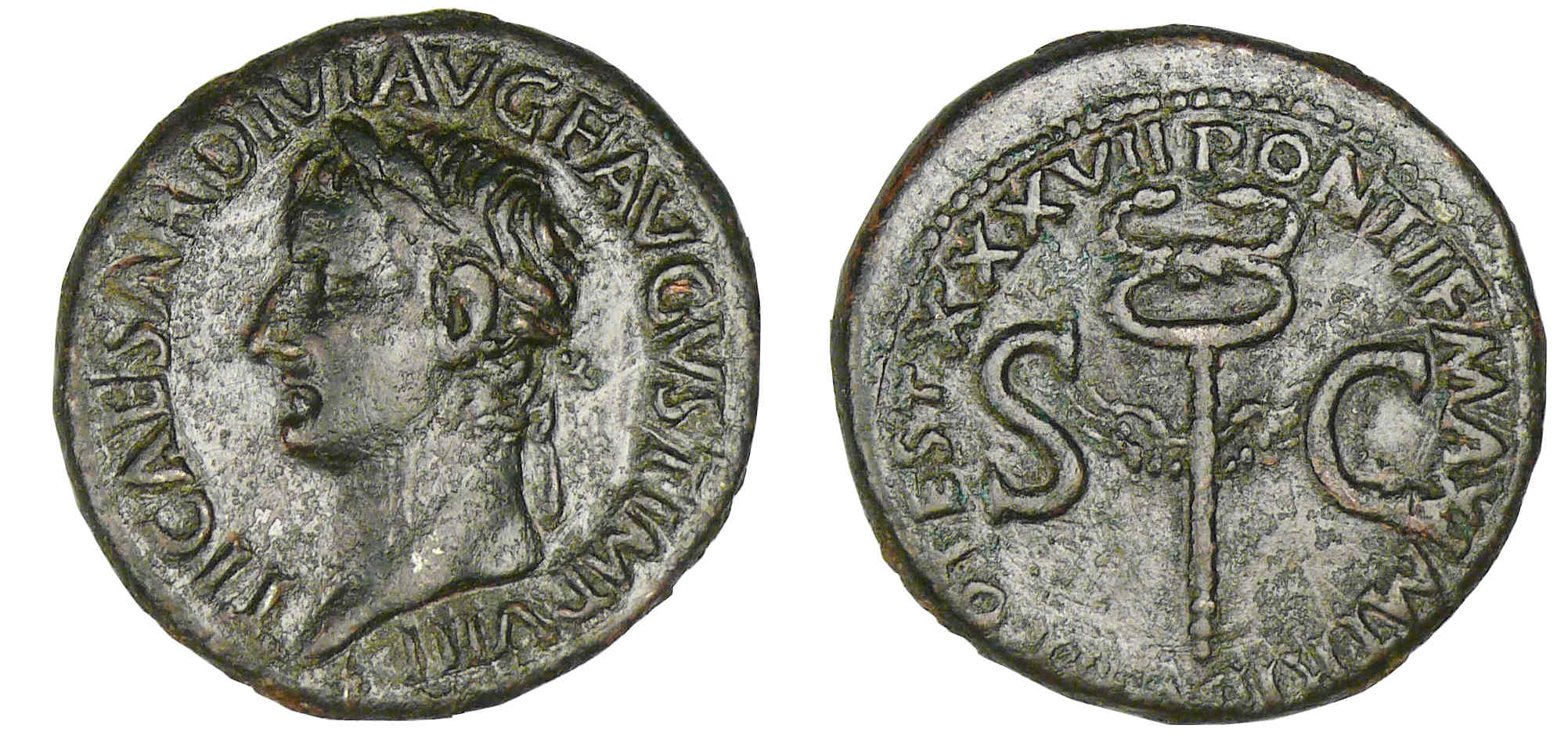 R/ PONTIF MAXIM TRIBVN POTEST XXXVII // SC. Caducée ailé.