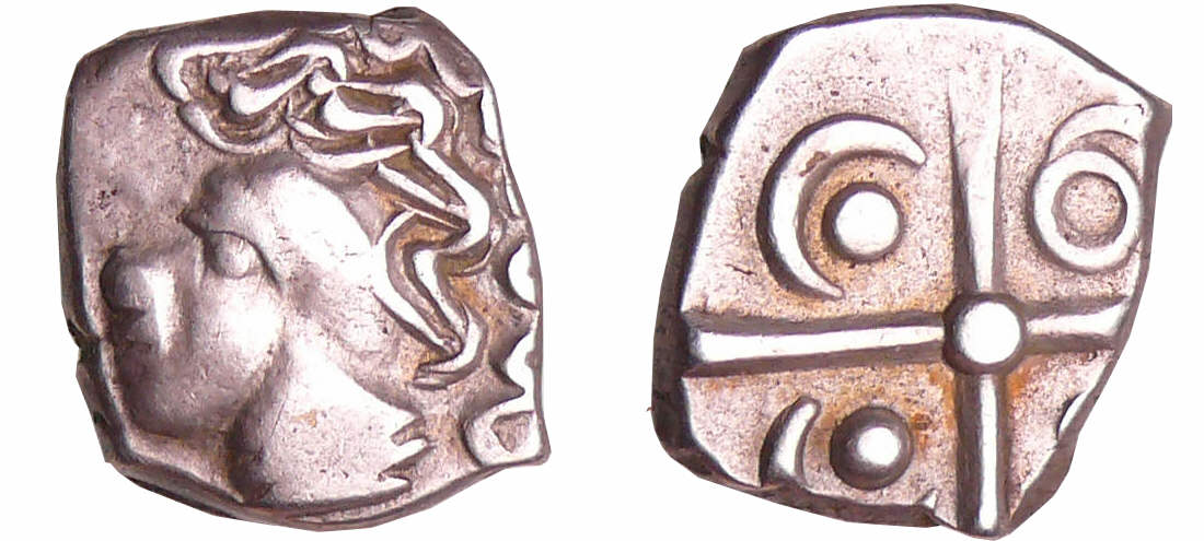 A/ Anépigraphe. Tête stylisée, de type négroïde à gauche.