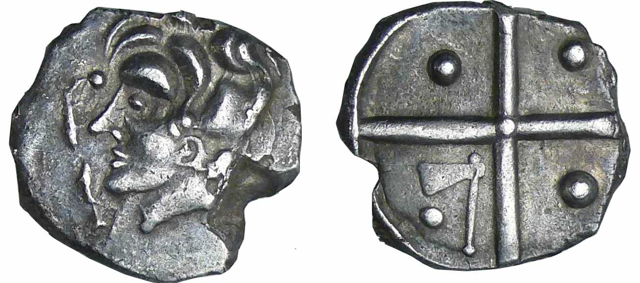 Revers : R/ Anépigraphe. Croix cantonnée de trois globules et d’une hâche pointée.