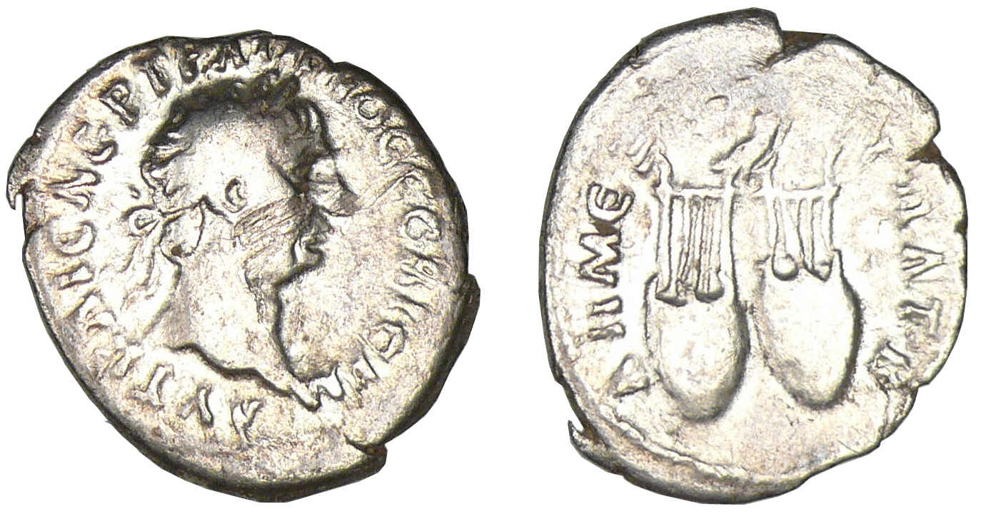 Revers : R/ ΔΗΜ ЄΞ ΥΠАT Β. Deux lyres.