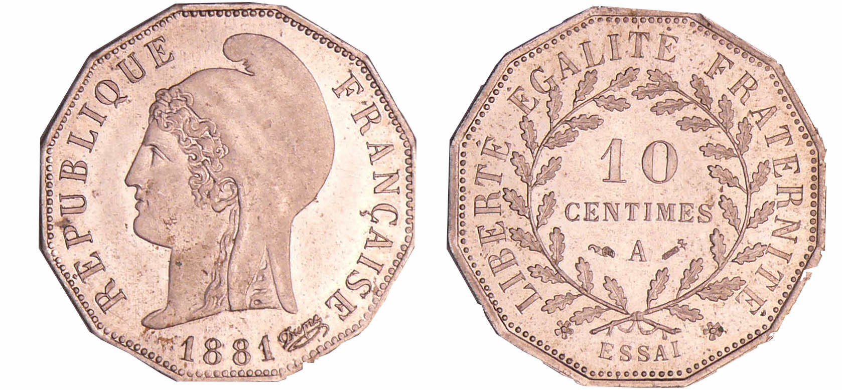 Troisième république (1871-1940) – 10 centimes 1881 A (Paris) essai flan à 12 pans