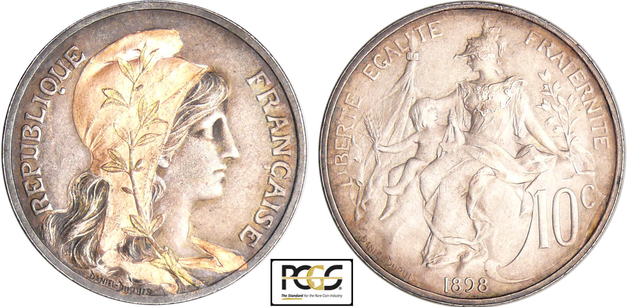 Troisième République (1871-1940) – 10 centimes Dupuis 1898 bronze argenté bicolore