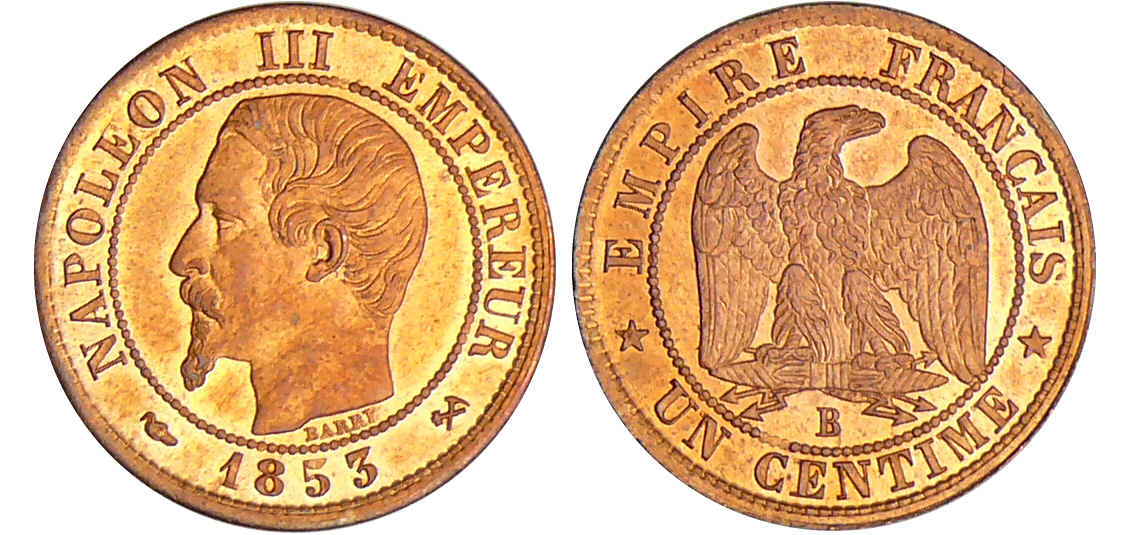 Napoléon III (1852-1870) – 1 centime tête nue 1853 B (Rouen)