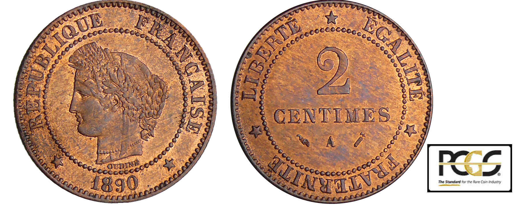 / Troisième république (1871-1940) – 2 centimes Cérès 1890 A (Paris)