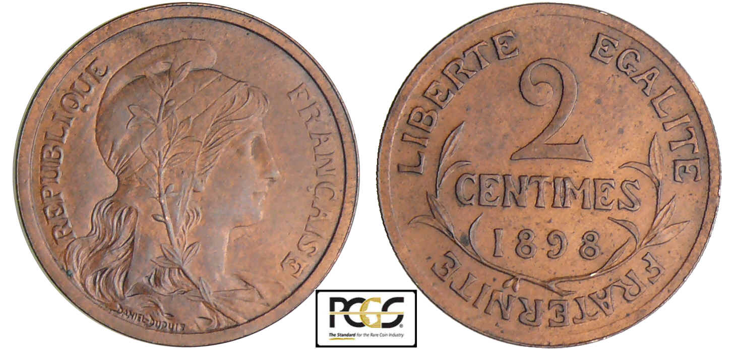 Troisième République (1871-1940) – 2 centimes Dupuis 1898 A (Paris) flan mat