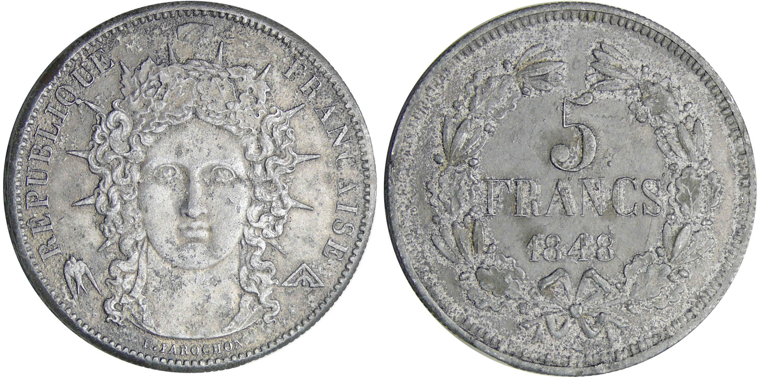 Deuxième république (1848-1852) – 5 francs concours de Farochon 1848 Piéfort