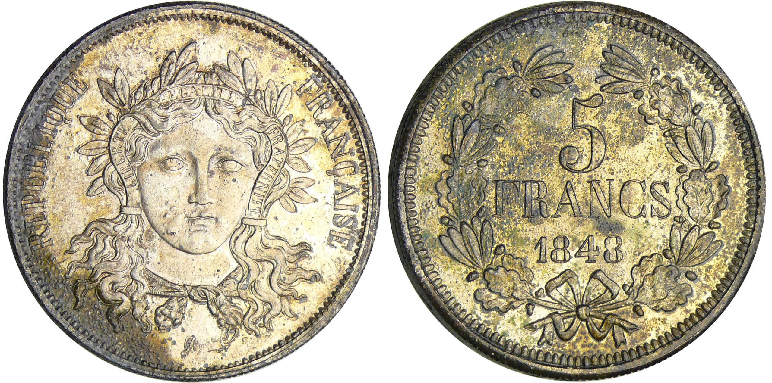 / Deuxième république (1848-1852) – 5 francs concours de Gayrard 1848 Piéfort