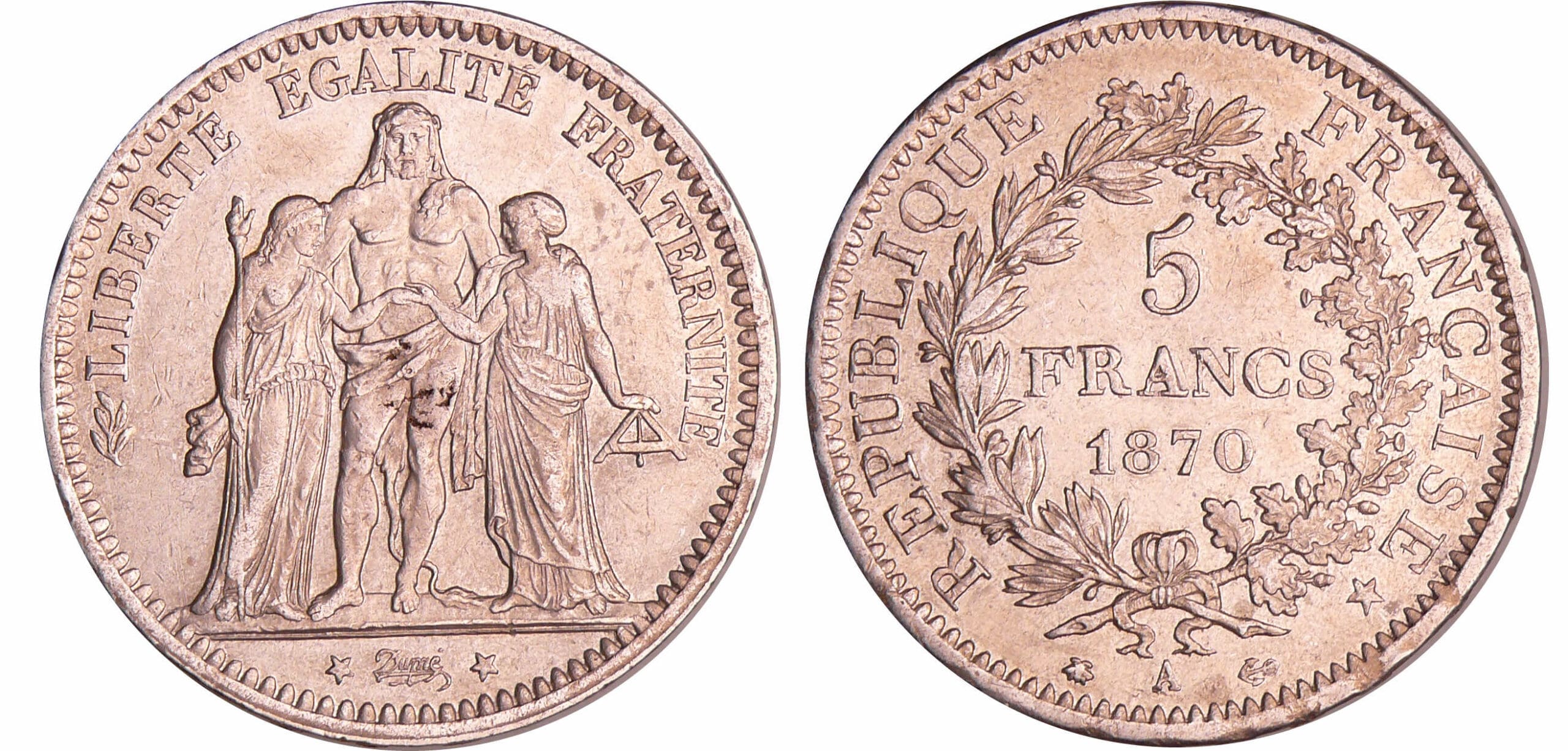 Troisième république (1871-1940) – 5 francs Hercule 1870 A (Paris)
