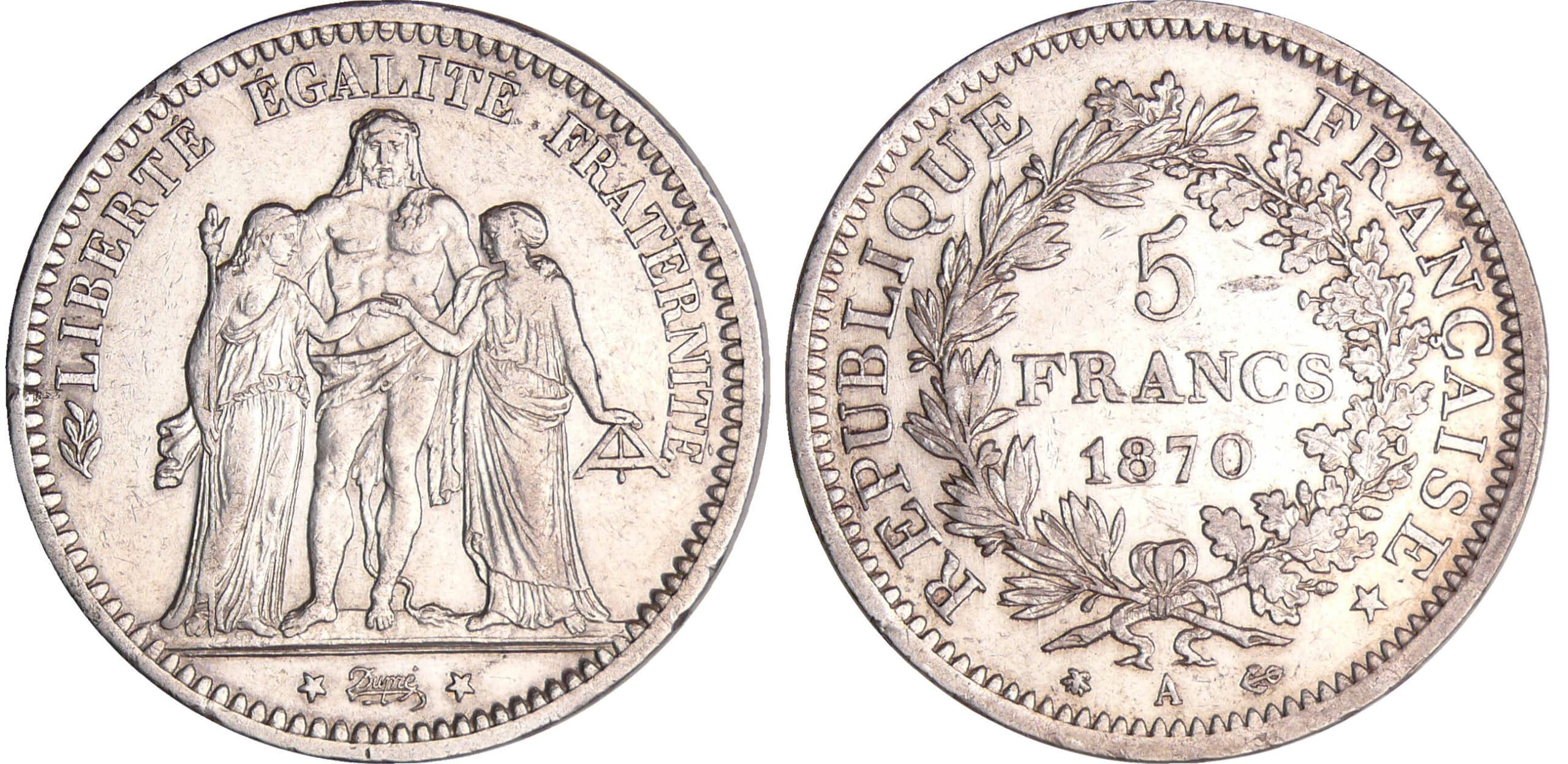Troisième République (1871-1940) – 5 francs Hercule 1870 A (Paris)