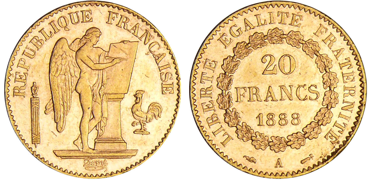 / Troisième république (1871-1940) – 20 francs Génie 1888 A (Paris)