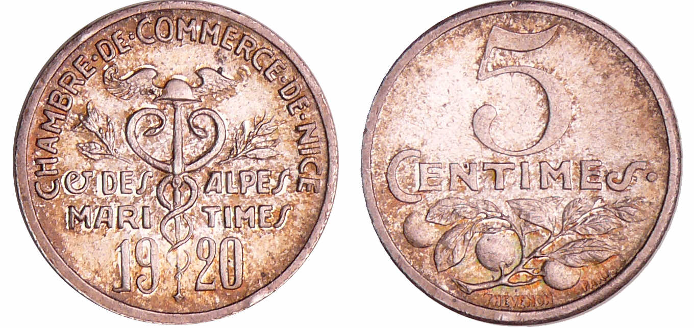 Troisième république (1871-1940) – Essai de 5 centimes Chambre de Commerce de Nice, 1920