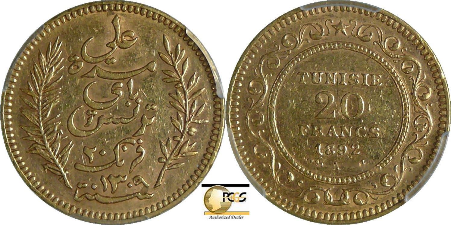 / Tunisie – Ali Bey (1882-1902) – 20 francs 1892 A