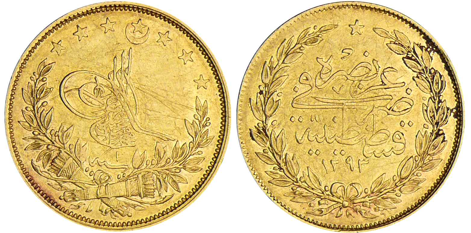 Turquie – Murad V – 100 kurush ١۲۹۳ / ١ (1876)