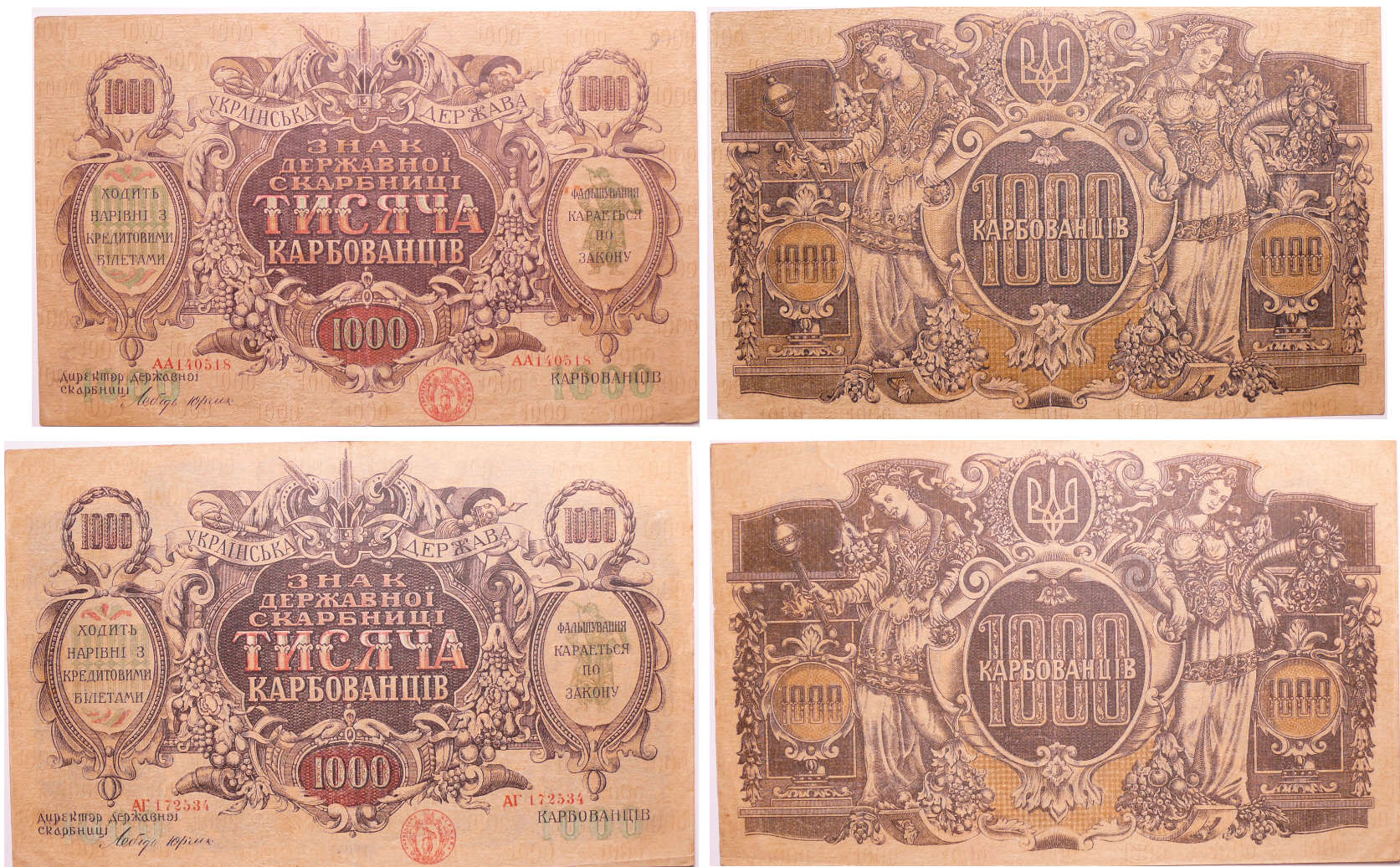 / Ukraine – State treasury note – 2 billets de 1000 karbovantsis (1918)