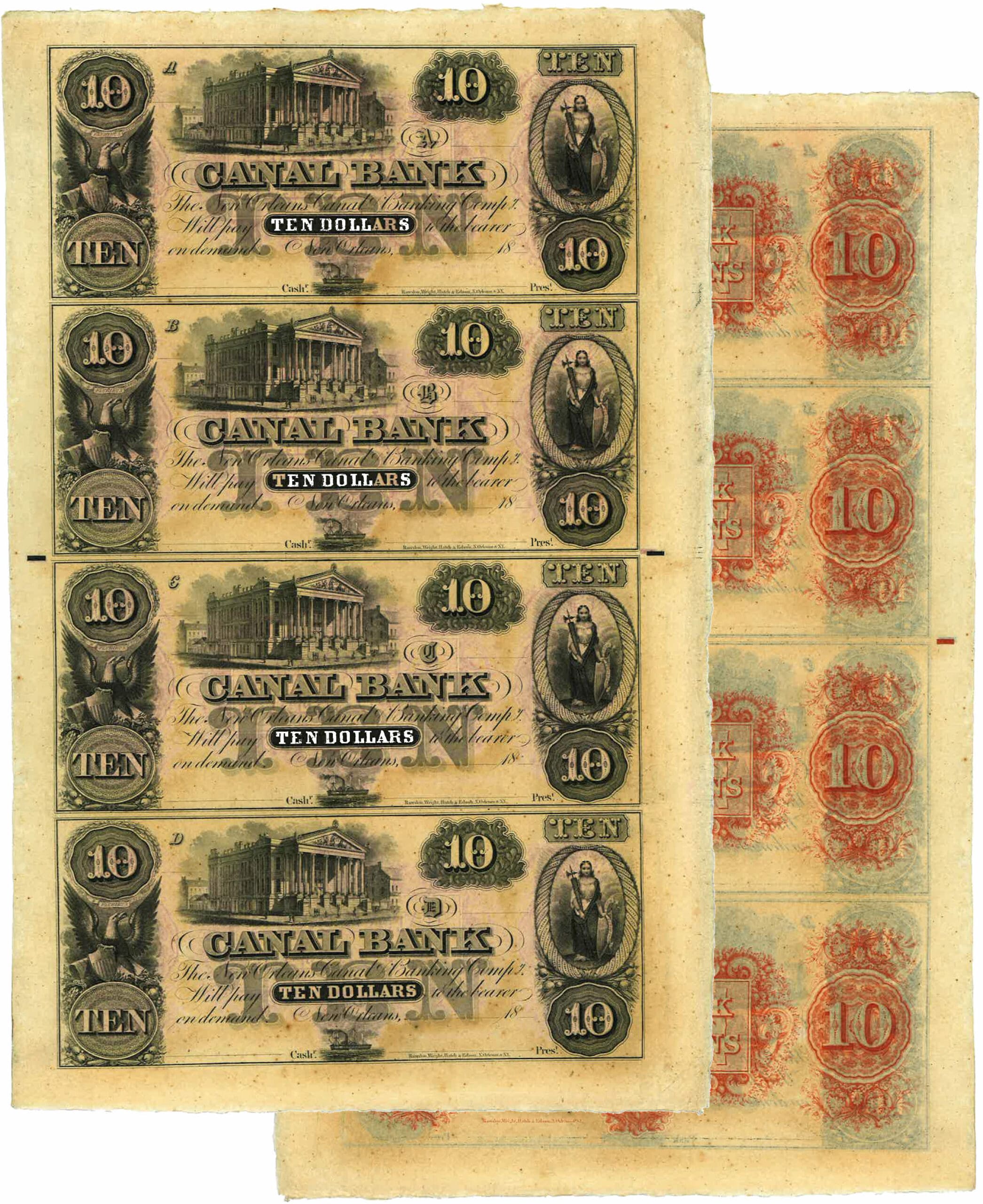 United States – Obsolete currency – Louisiana (New Orleans), Canal bank – Planche de 4 billets de 10 dollars 18– série A-B-C-D