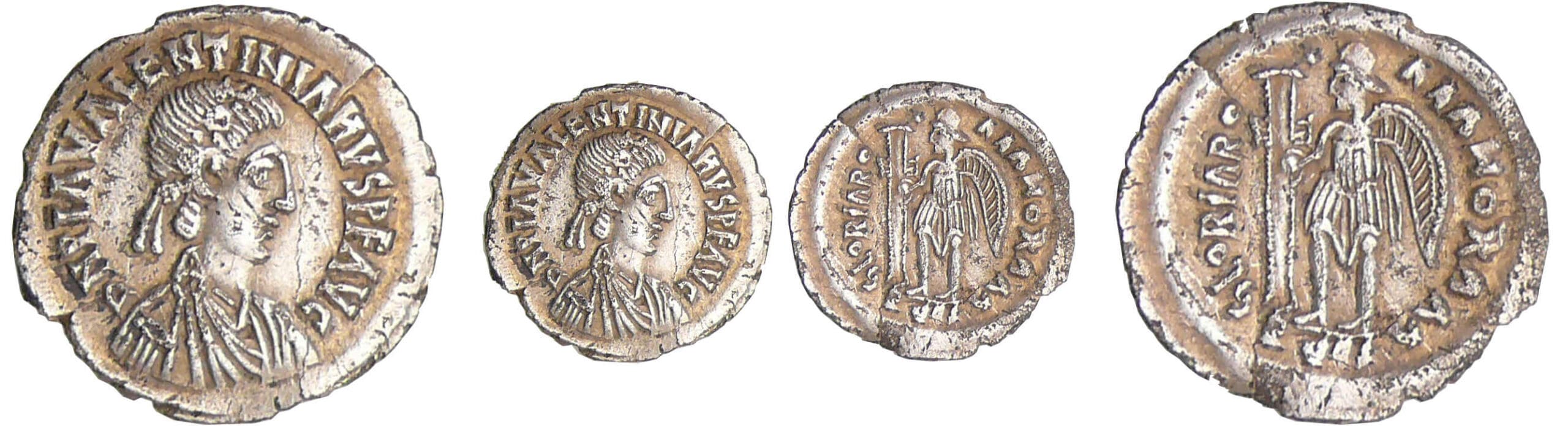 Les monnayages des pseudo-ateliers associés, attribués au Wisigoth, continuent à respecter peu ou prou ces consignes. C’est dans ce contexte que se situe l’émission de cette demi-silique au nom de Valentinien III.