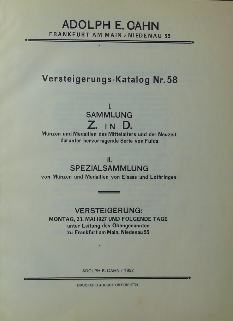 Versteigerungs- Katalog Nr 58, Adolph E. Kahn, 1927