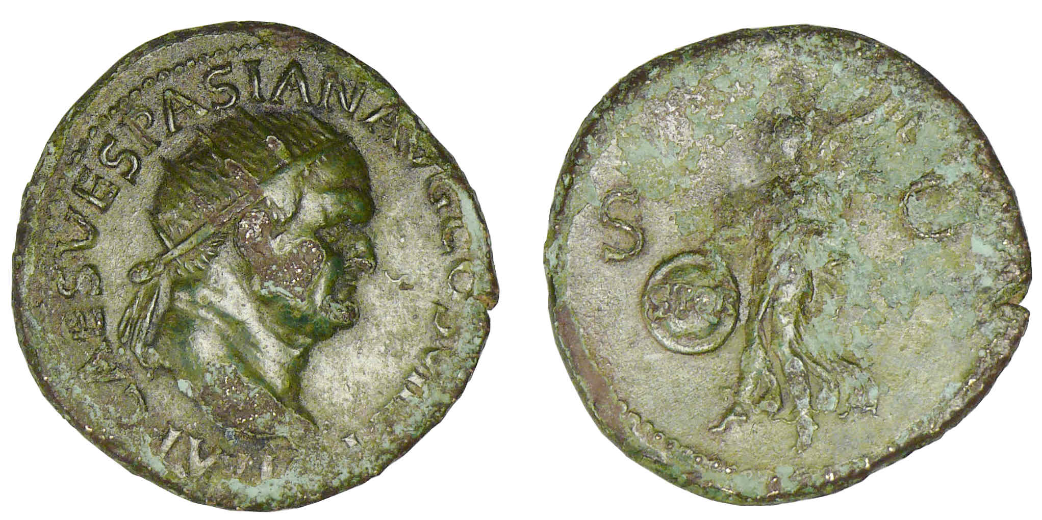 Avers : A/ IMP CAES VESPASIANVS AVG COS III. Tête radiée à droite. Au-dessous, un globe.