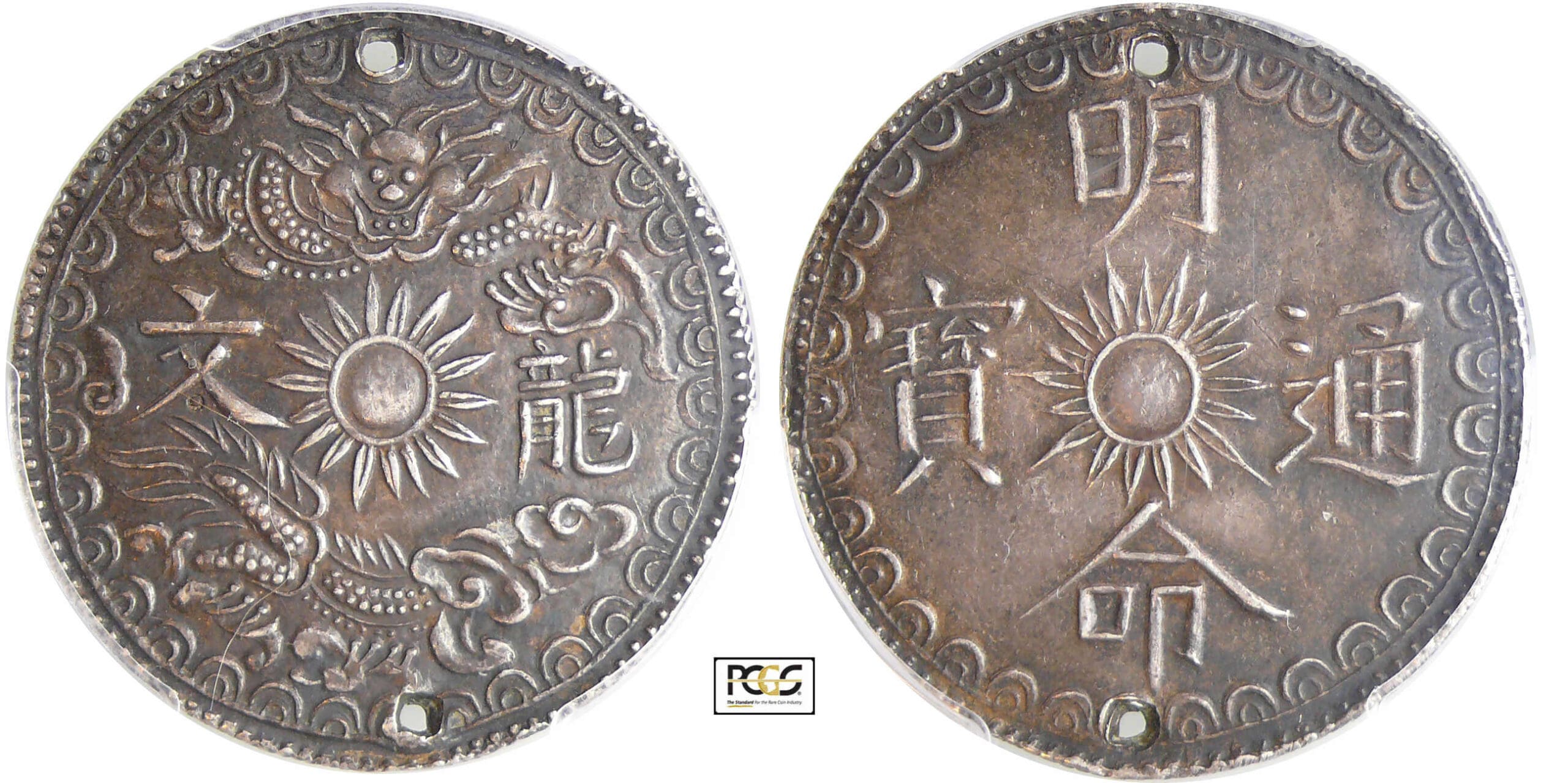 Observation : Monnaie percée pour le passage de la passenterie. PCGS #32234273.